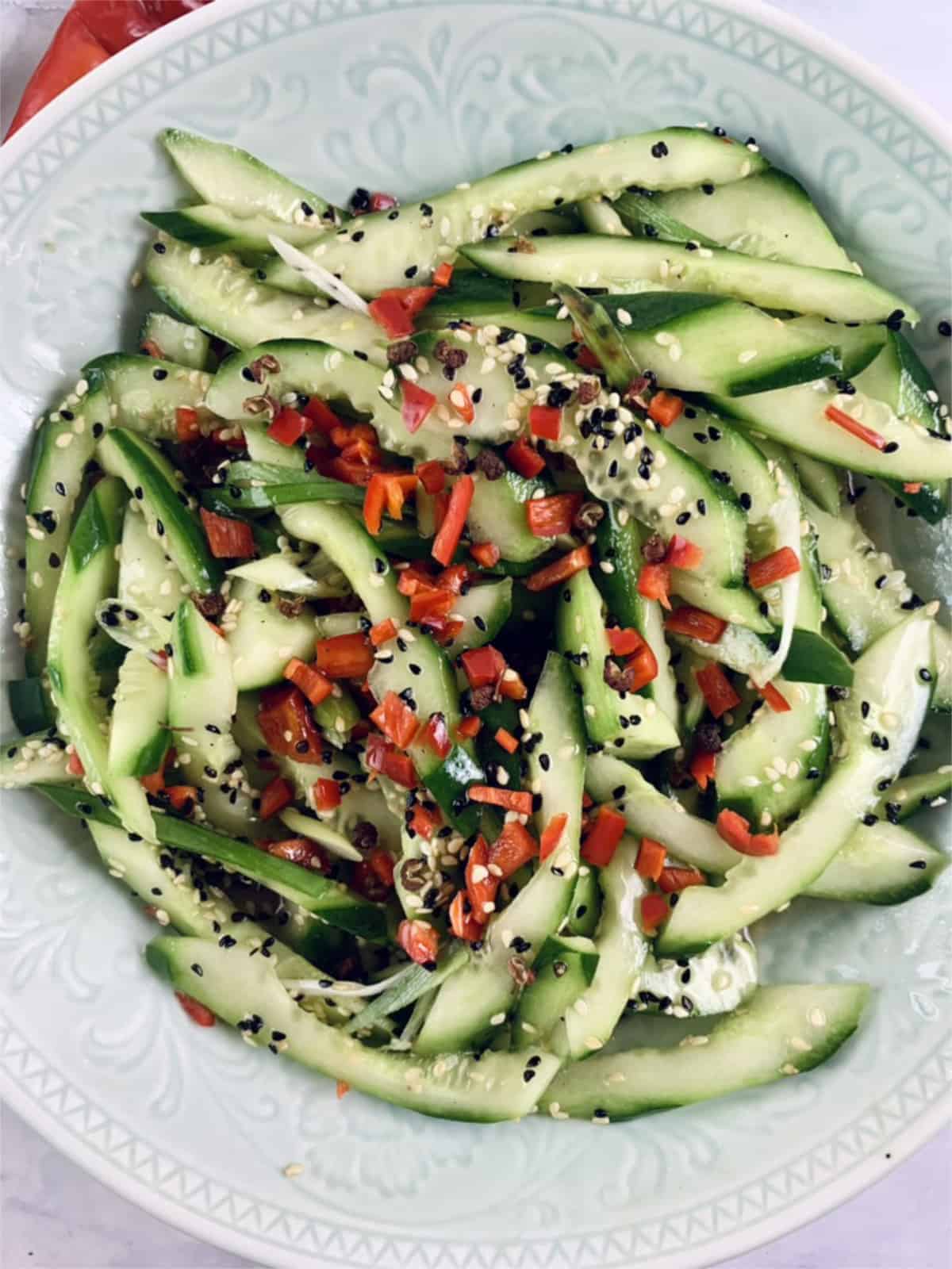 This Chinese cucumber salad features cool cucumbers the perfect foil to cool you down on hot days or to combat the heat from a curry.