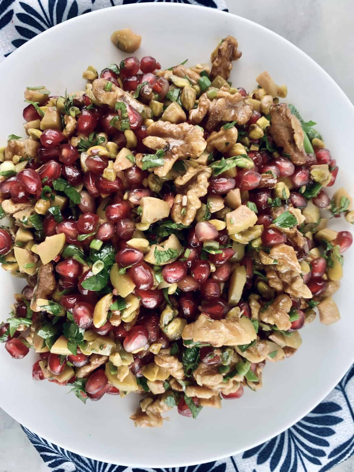 This Green Olive Walnut and Pomegranate Salad, while not one of my personal recipes, was a must-have on our Christmas table!