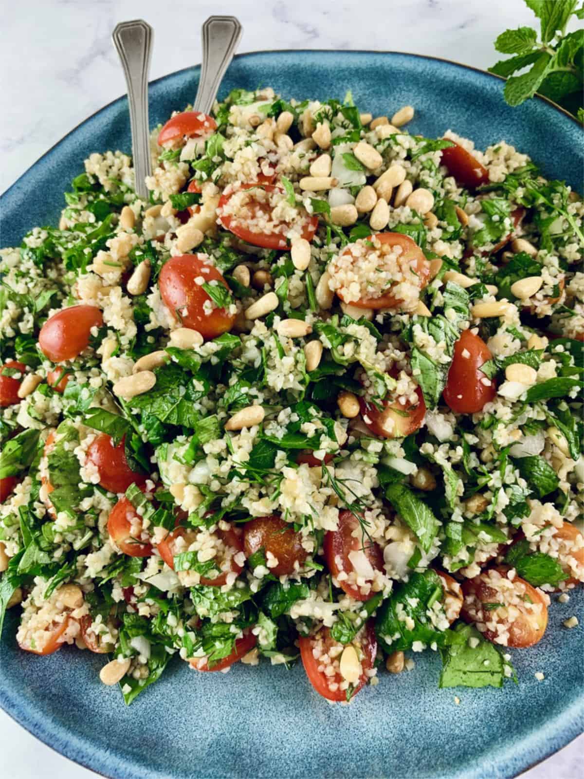 Herb tabbouleh salad is suitable for vegan, vegetarian and dairy-free eaters.