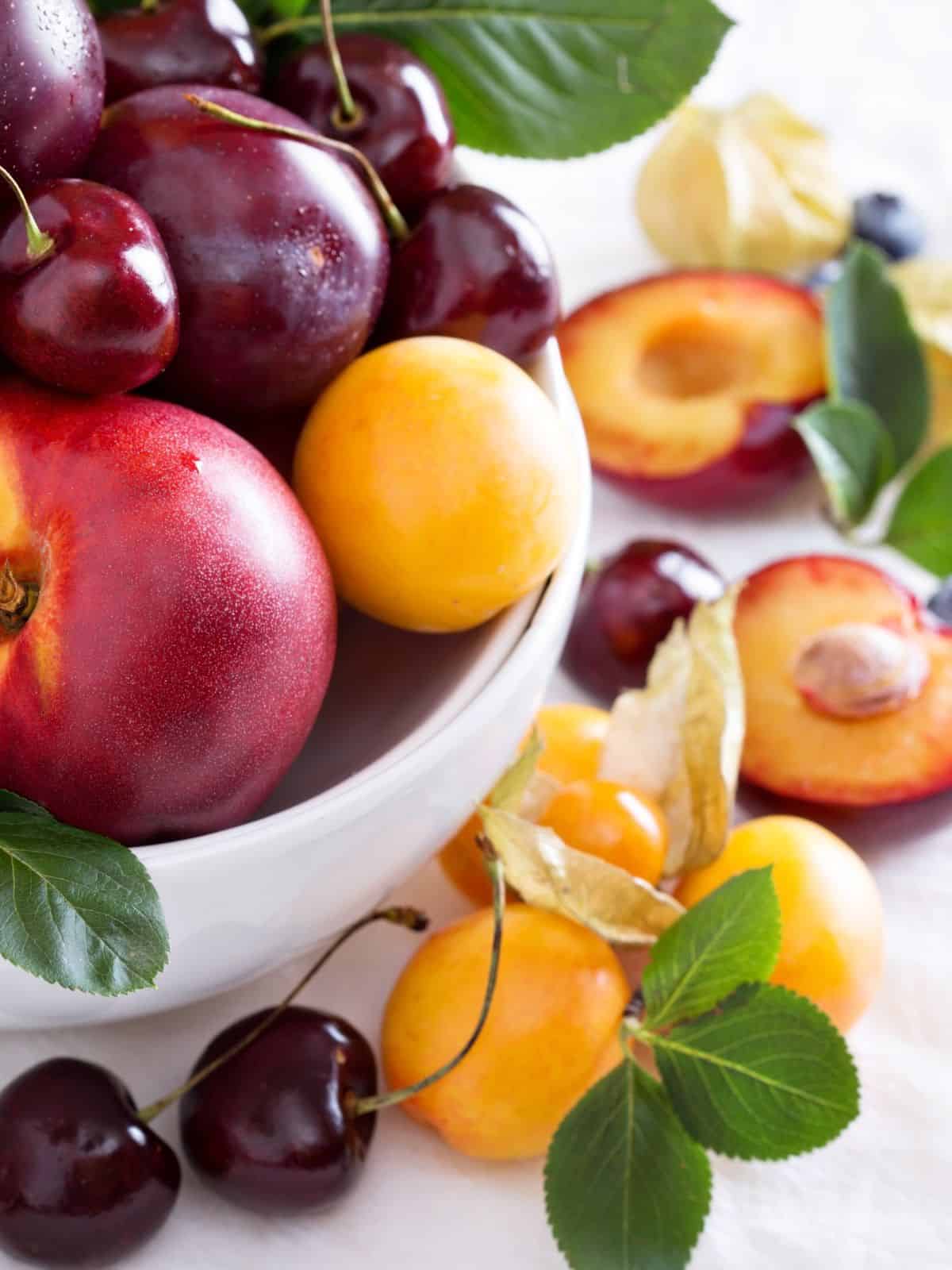 Stone fruits are at their peak in summer, and you will find apricots, cherries, nectarines, peaches, and a large variety of plums.